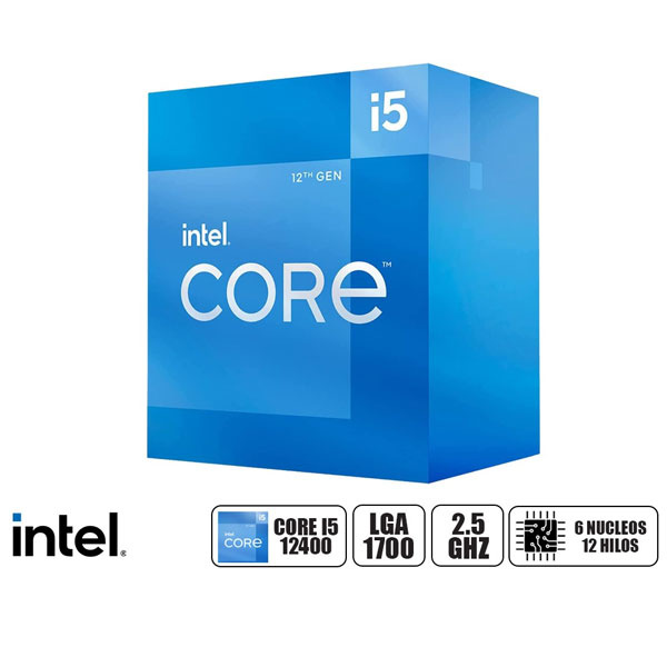 - PROCESADOR INTEL CORE I5-12400, 2.50/4.40GHz 18MB SmartCaché, LGA1700, 117W, Intel 7(10nm) INCLUYE FAN COOLER/INCLUYYE CONTROLADOR GRAFICO DE VIDEO (BX8071512400) S/999.00